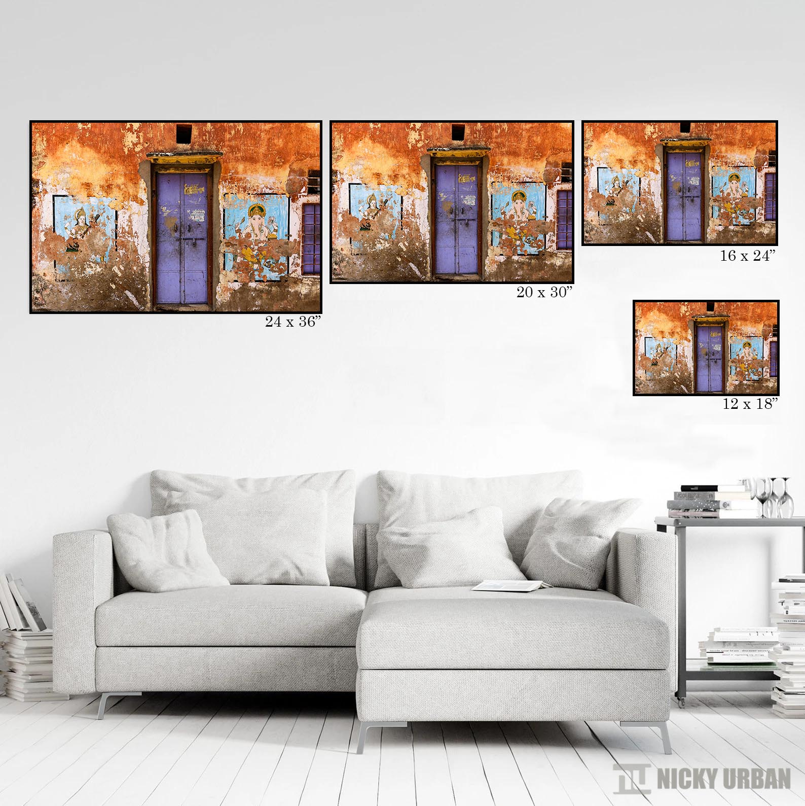 In Indian culture, colour has both political and religious significance and is used in many things. In this old house, the orange-brownish contrasts with the painting of God gives the overlook a natural, authentic rustic feel. God bless the home.